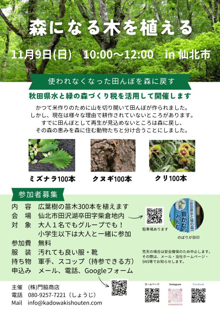【参加者募集】11/9(日)植樹会「森になる木を植える」